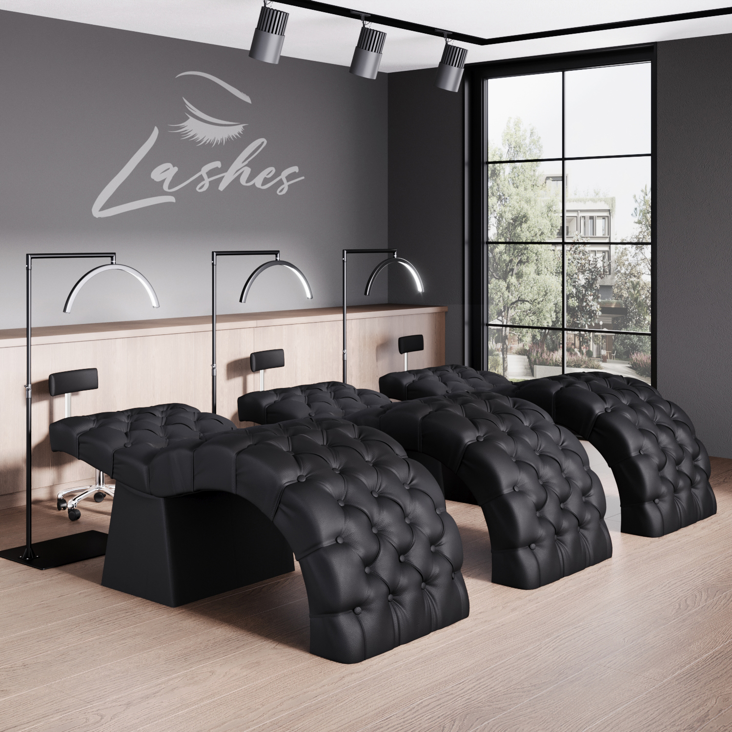 durante la extensión de pestañas. Diseñada para brindar comodidad tanto al profesional como al cliente, nuestra camilla LASHIA es la elección perfecta para elevar tu servicio a otro nivel.
