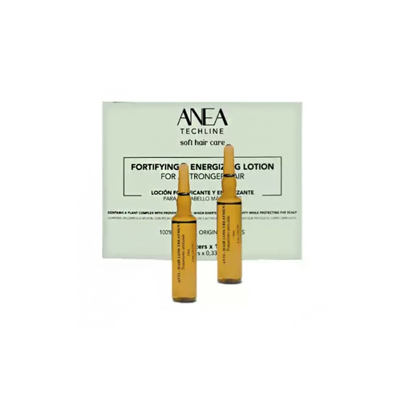 Ampollas Anticaída Fortificantes ANEA Techline, tratamiento intensivo para fortalecer, revitalizar y prevenir la caída del cabello, en formato de 12 ampollas de 10 ml.