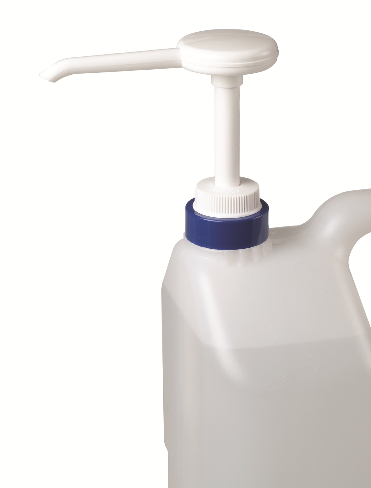 Dosificador manual para garrafas de 5 litros, ideal para champús, geles, cremas y líquidos profesionales. Cómodo, resistente y fácil de usar.