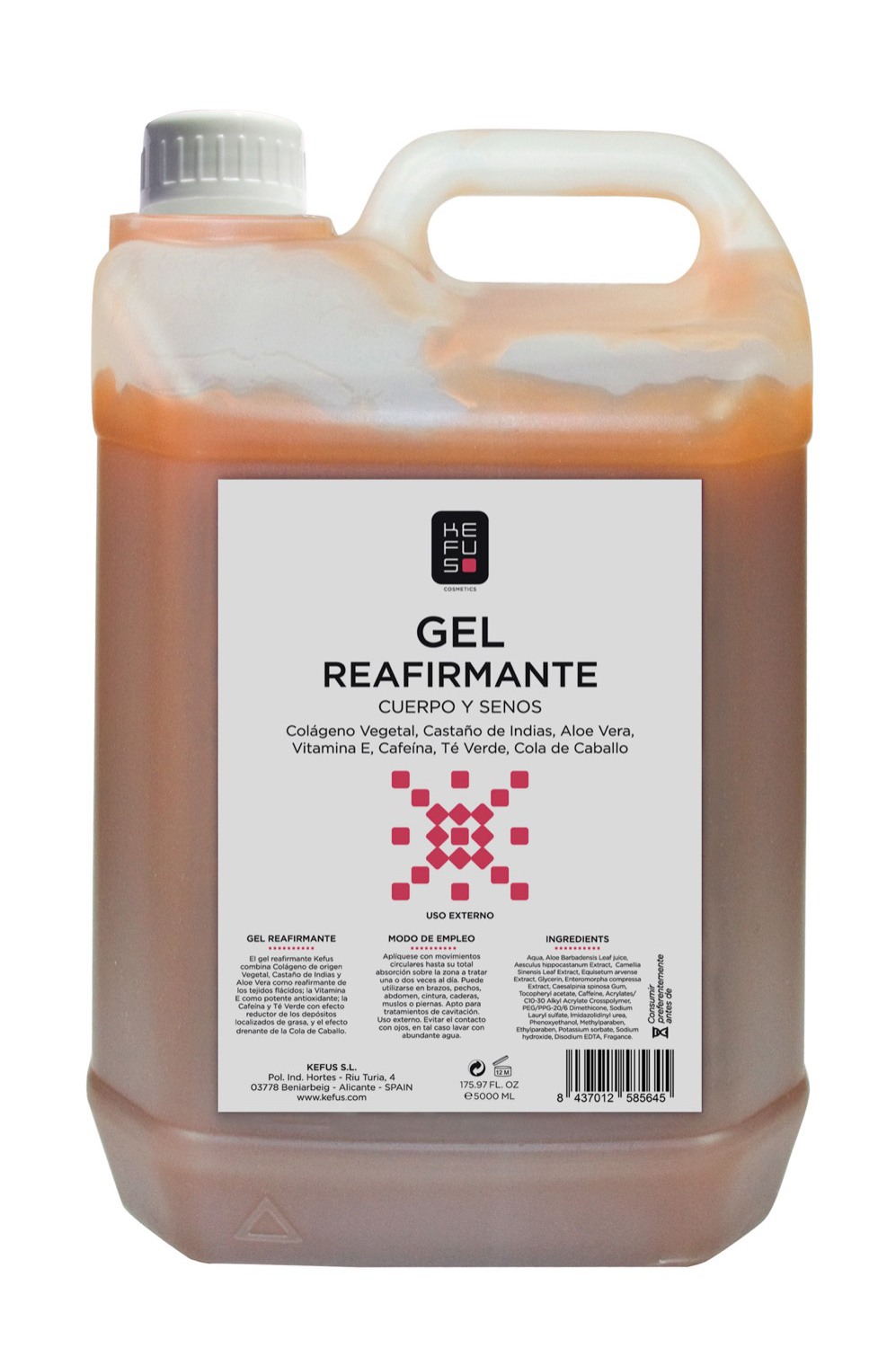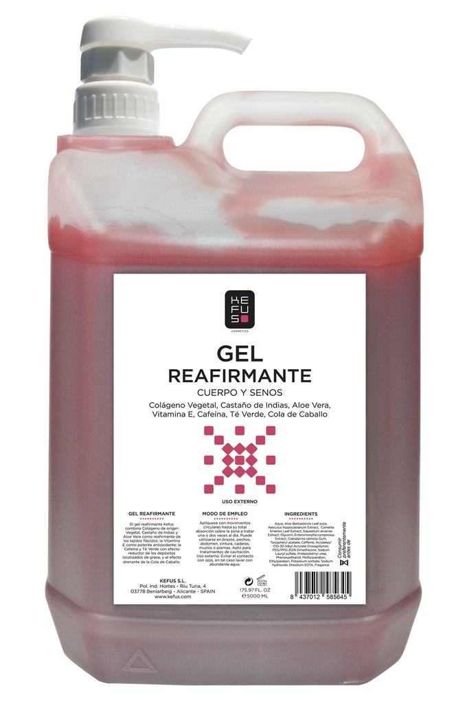 El Gel Reafirmante KEFUS está especialmente formulado para mejorar la firmeza, elasticidad y tonicidad de la piel. Ideal para tratamientos corporales que buscan combatir la flacidez en zonas como abdomen, brazos, muslos y glúteos.