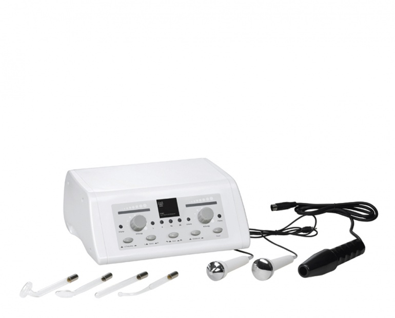 Equipo de belleza que combina 2 funciones: alta frecuencia y ultrasonidos. Los ultrasonidos emiten dos tipos de ondas: continua y pulsada a escoger según el tratamiento a realizar.
