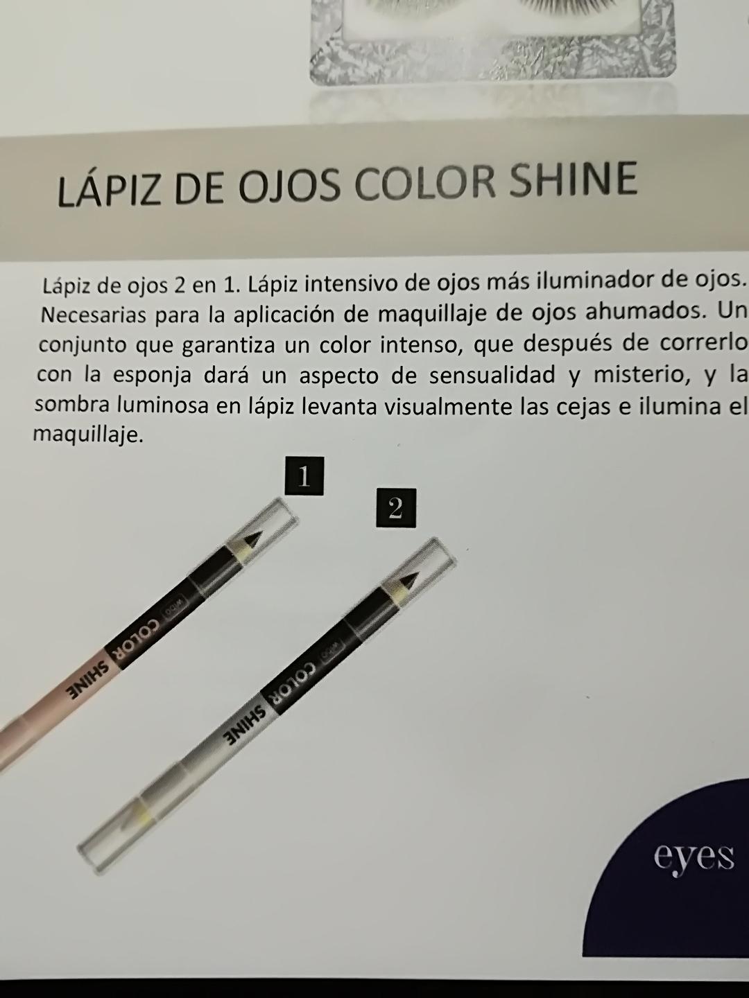 El juego garantiza un color intenso del contorno, que después de esparcirse con una esponja le da a la apariencia un toque de sensualidad y misterio, mientras que el lápiz de sombra luminosa levanta las cejas e ilumina el maquillaje.