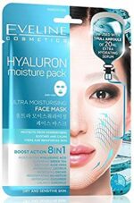 Mascarilla coreana facial 8 en 1 con ácido hialurónico. Hidratación profunda, efecto rellenador y piel visiblemente más suave y luminosa. Marca EVELINE.