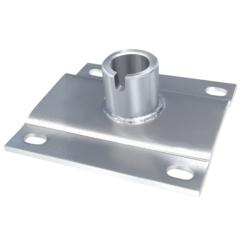 Se fija con 4 tornillos al asinto de la silla de peluqueria. Es adaptor para montar el mecanismo de la bomba hidraulica.
