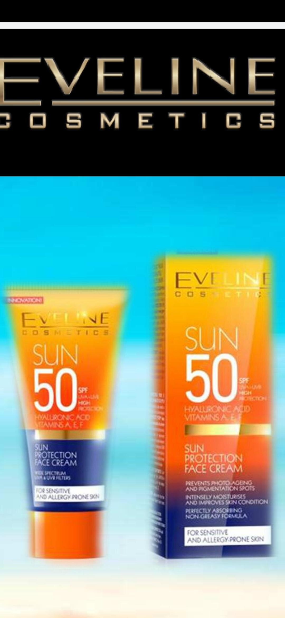 Inicio Estética Cremas faciales Protector Solar Eveline SPF 50 con filtros UVA y UVB, 50 ml
