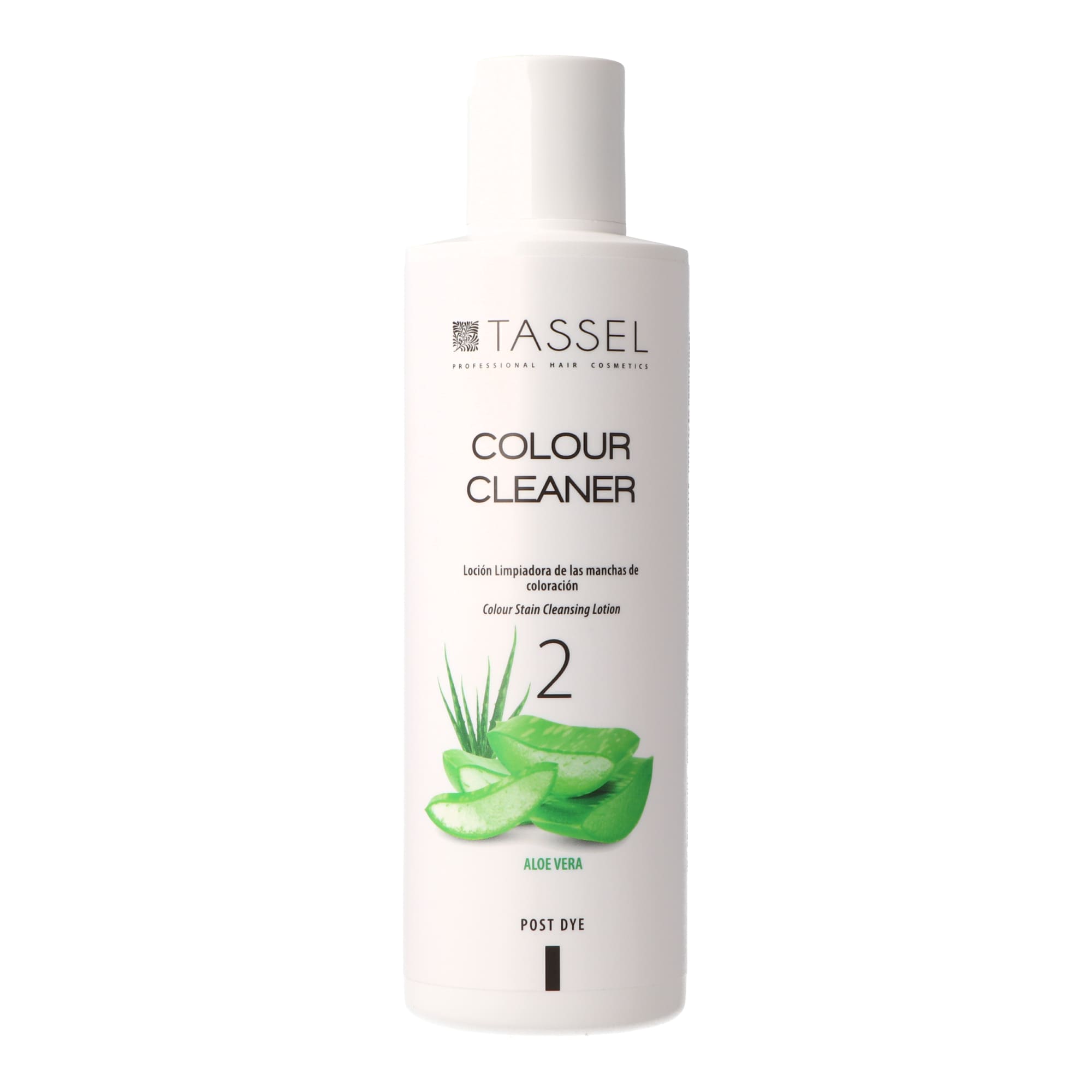 Loción limpiadora que elimina eficazmente las manchas de tinte en la piel tras la coloración, cuidando y calmando gracias a las propiedades del aloe vera.