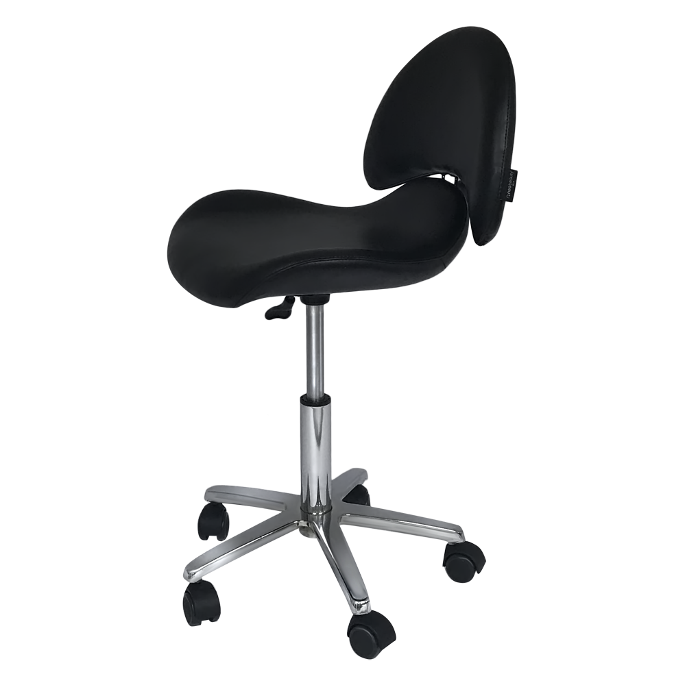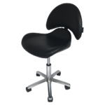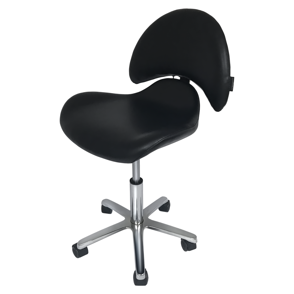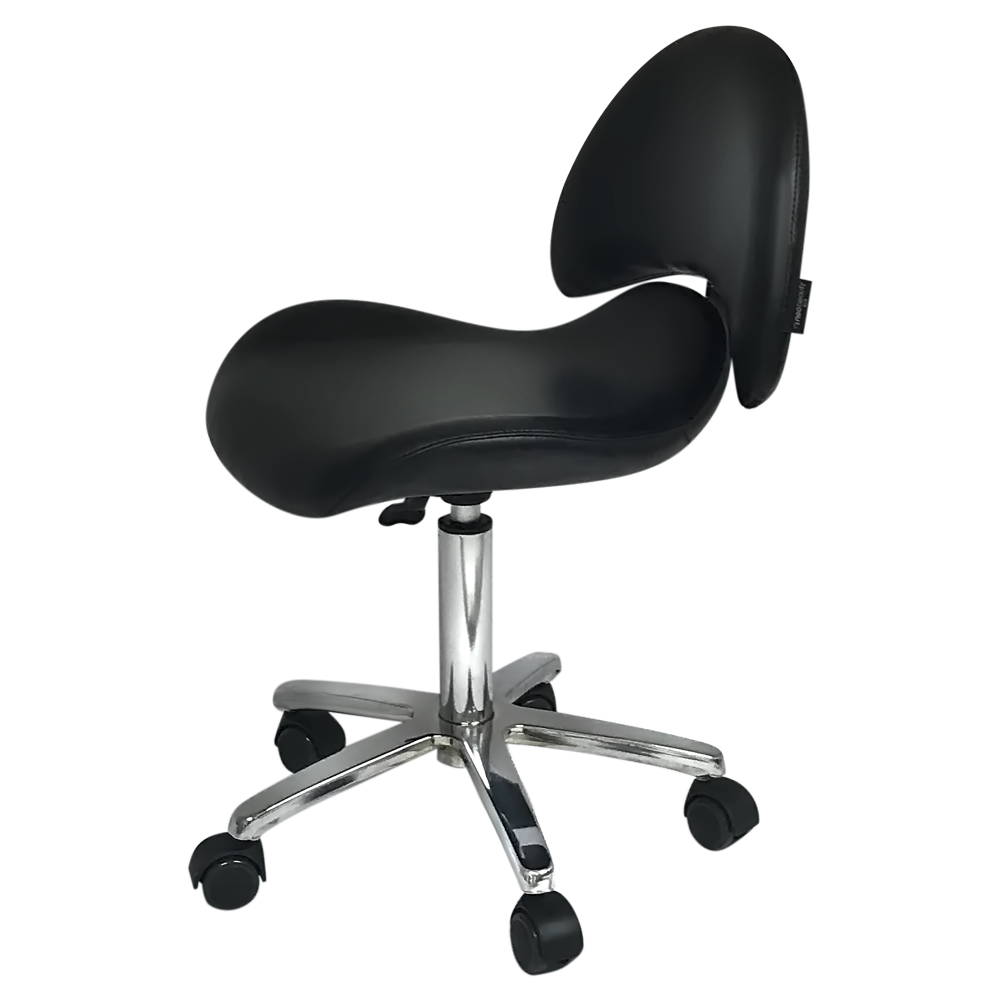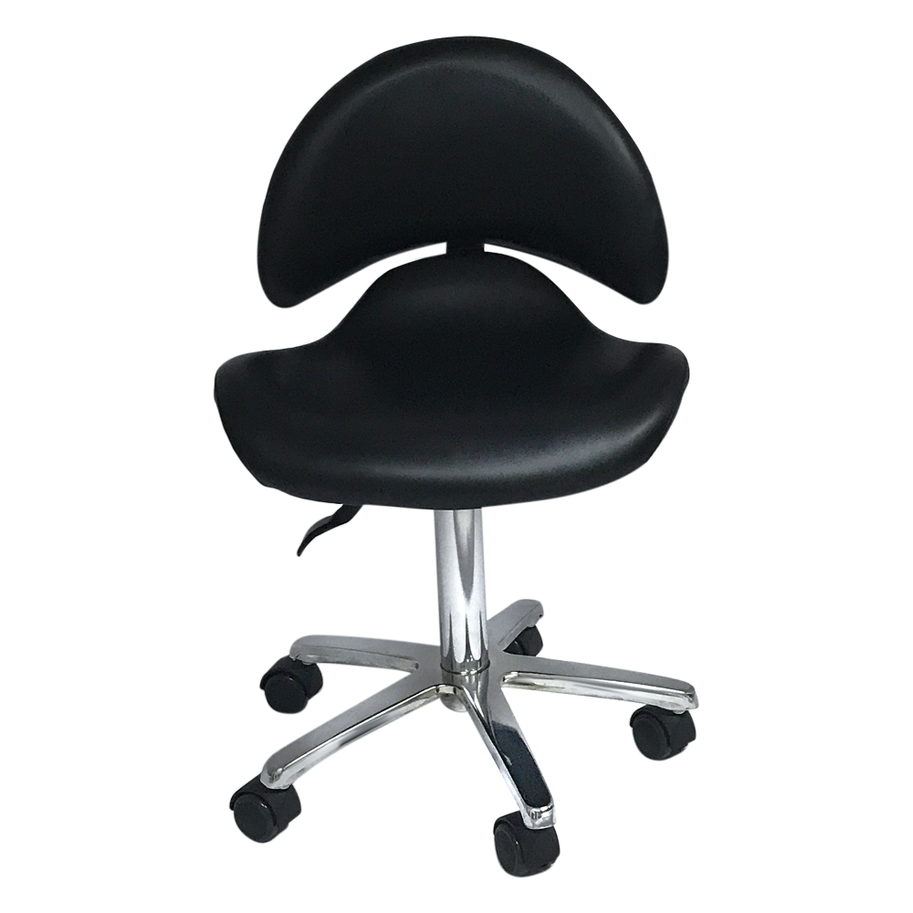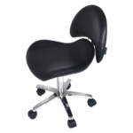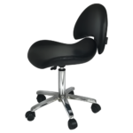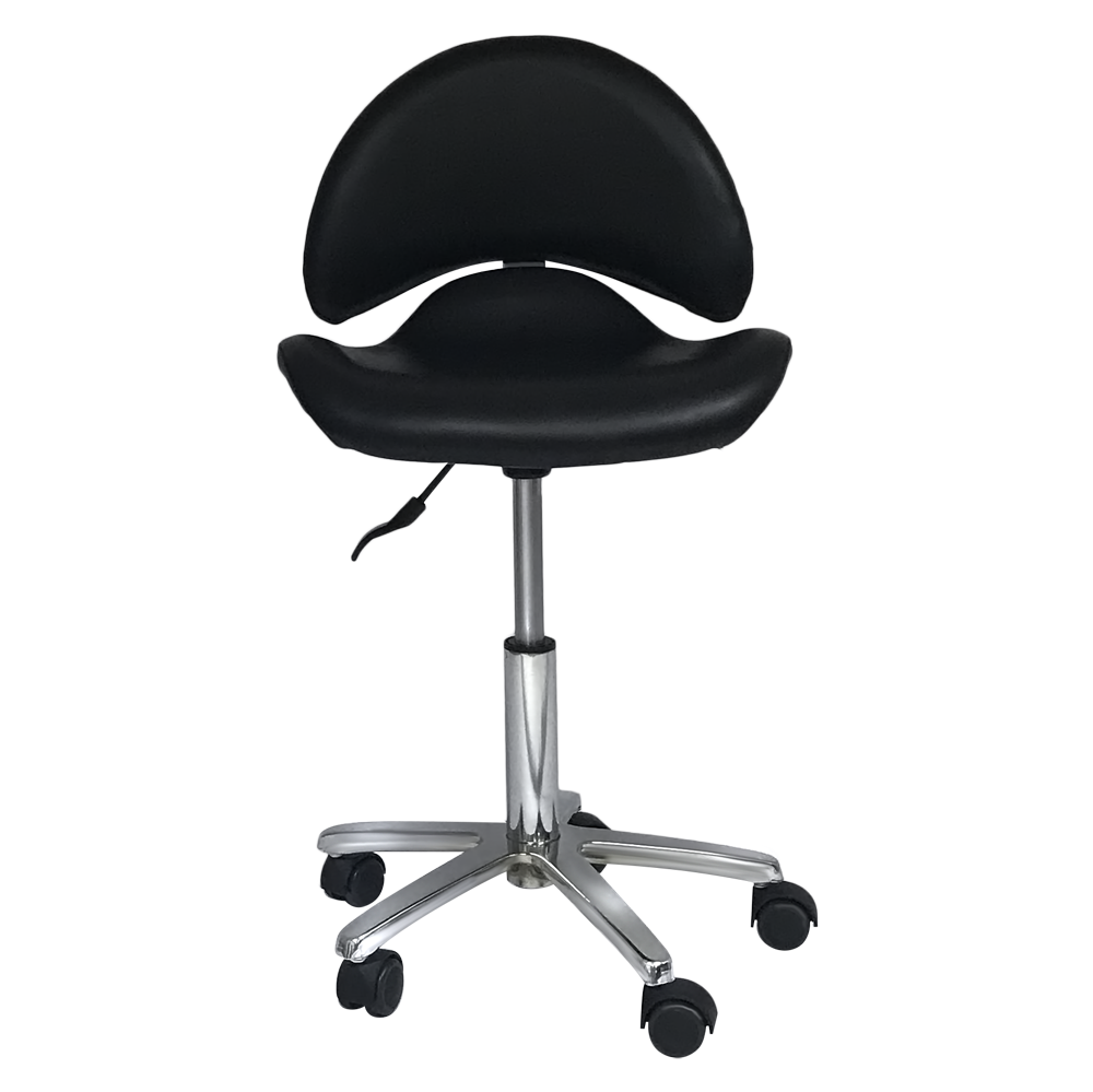 Taburete auxiliar estética Dani con asiento ergonomico a respaldo ancho.