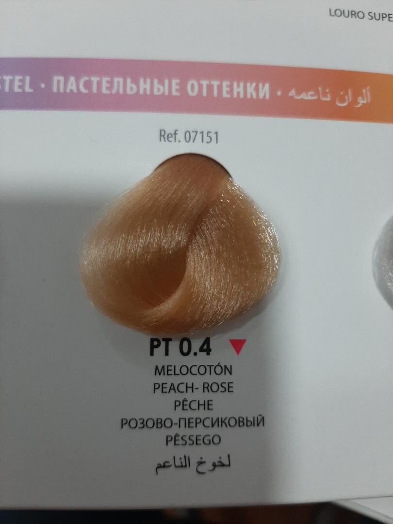 Tono melocotón pastel suave, ideal para darle un toque cálido y luminoso al cabello. Sin amoníaco.