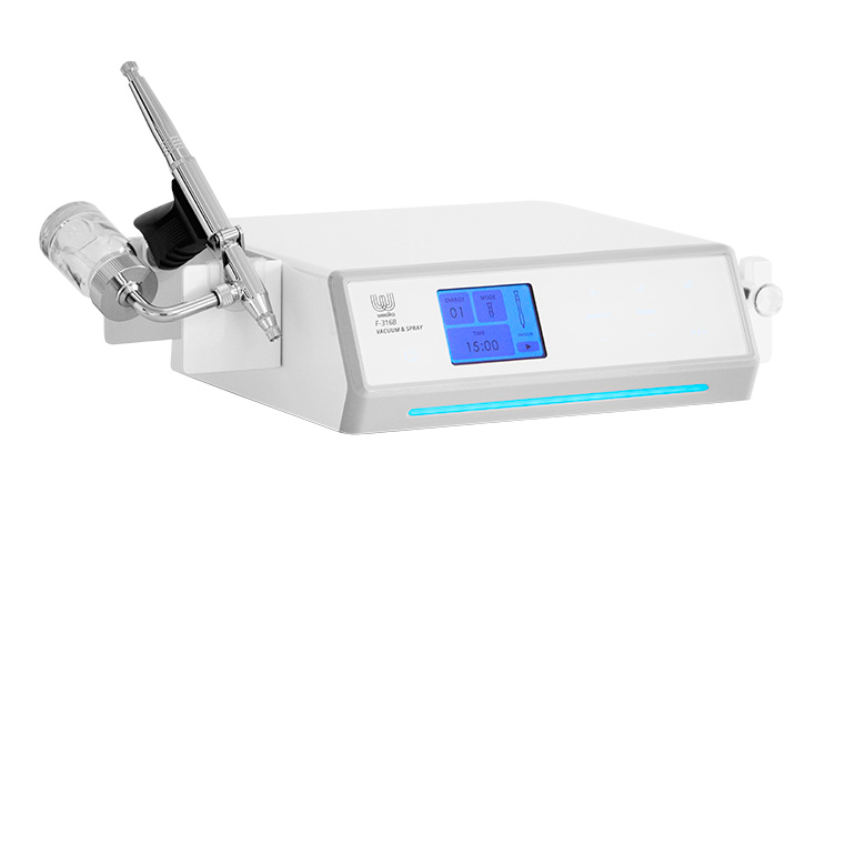 El Vacuum & Spray Ref. F316B WEELKO es un equipo profesional de electroestética diseñado para ofrecer tratamientos de limpieza profunda y aplicación eficiente de productos cosméticos en centros de estética. Este equipo combina dos funciones esenciales: el vacuum (aspirado) y el spray (pulverización), lo que lo convierte en una herramienta versátil para realizar una amplia variedad de tratamientos faciales y corporales.