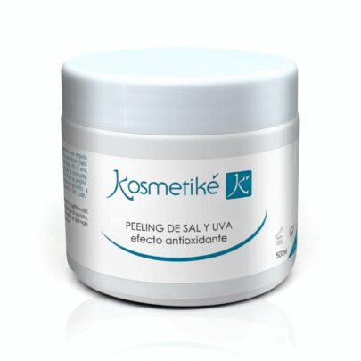 Peeling corporal de sal y uva Kosmetiké Profesional 500 cc. Exfolia, renueva y suaviza la piel, dejándola fresca y revitalizada con una mezcla de sal marina y extracto de uva.